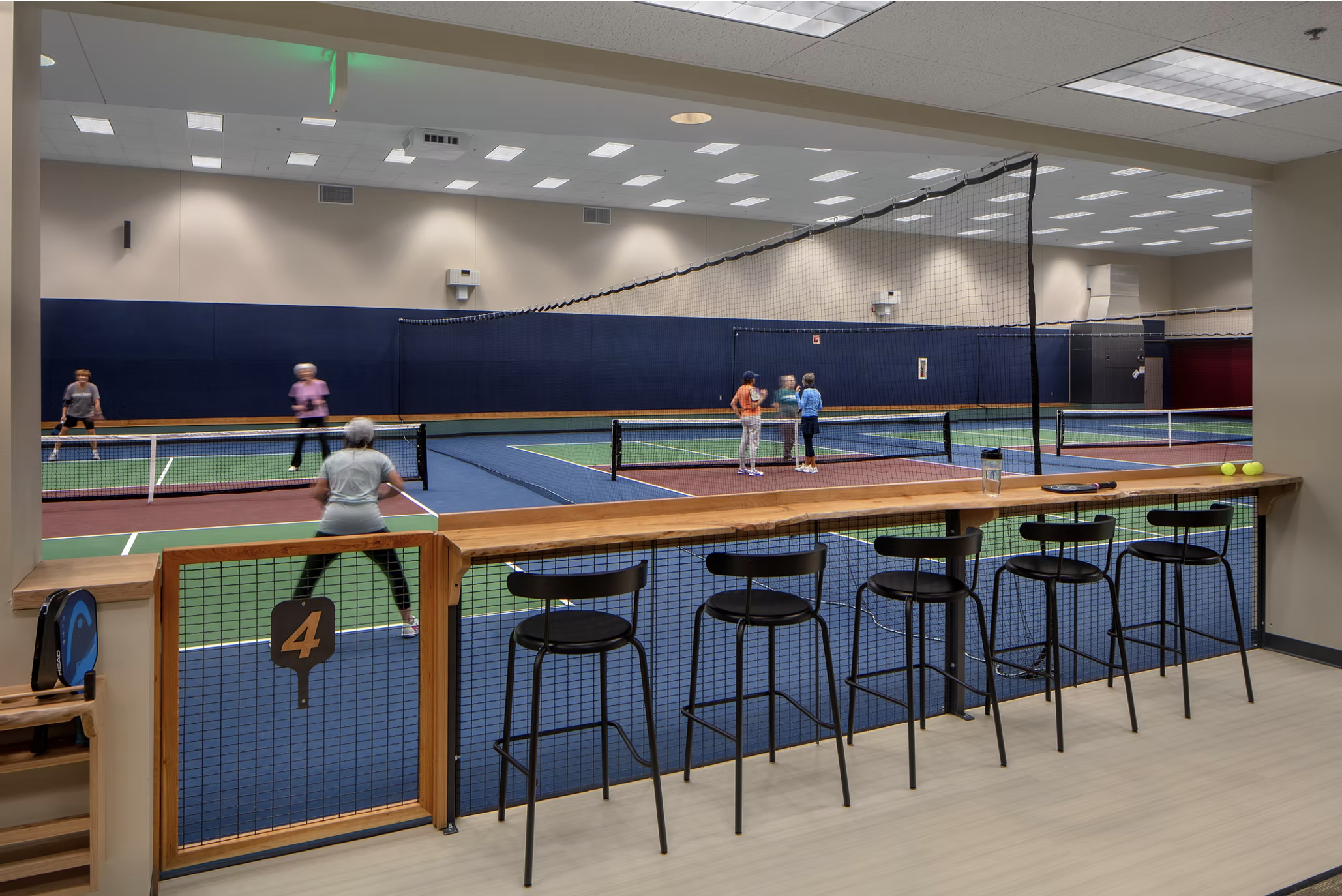 Book one of seven state-of-the-art indoor pickleball courts designed for all skill levels. Whether you’re interested in lessons, friendly league play or enjoying a game with friends, the MPC has you covered, literally—rain, heat or snow.